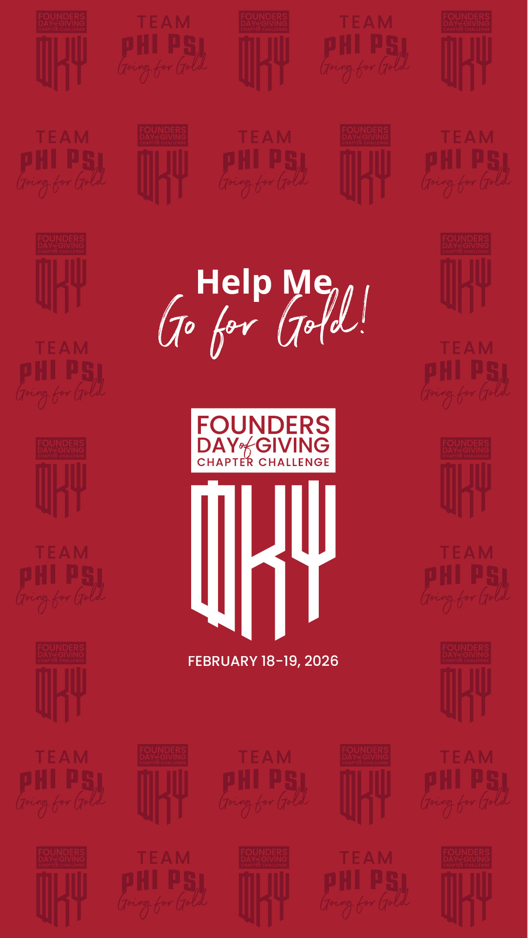 February 18-19 is #PhiPsiFoundersDayofGiving! Join me in rallying behind [Chapter Name] and help us bring the Chapter Challenge trophy home to [School Nickname]! Learn more and give today at [Personalized Link].